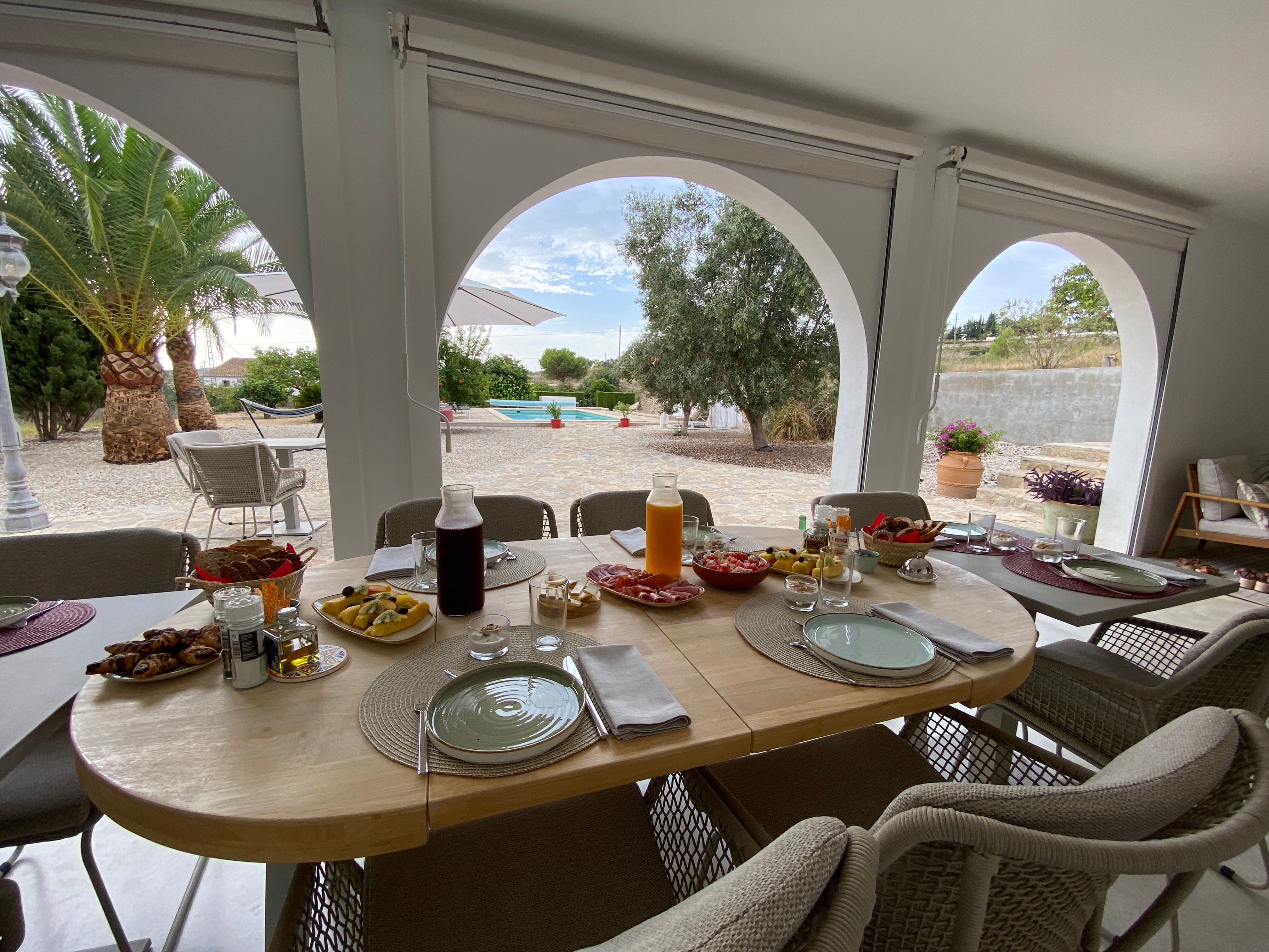 On our cycling holiday, we will be staying at Finca de la Pansa, a 5* reviewed accommodation, offering superb en-suite rooms, excellent customer service and a host of services. You can fully unwind at Finca de la Pansa, translated as 'farmhouse of the raisins'. Around 1900, this traditional riurau was used to dry grapes into raisins, a typical activity in the Marina Alta region where we are located. The rustic property has been completely rebuilt and renovated while preserving authentic elements. At Finca de la Pansa, you can enjoy tranquillity, a refreshing dip in the pool, or a good book and a glass of Moscatel in the large garden. But also, the more adventurous type will not be disappointed here: the region offers beautiful hiking trails and is a paradise for those who love cycling. All rooms are en-suite and the venue also offers bike storage.
