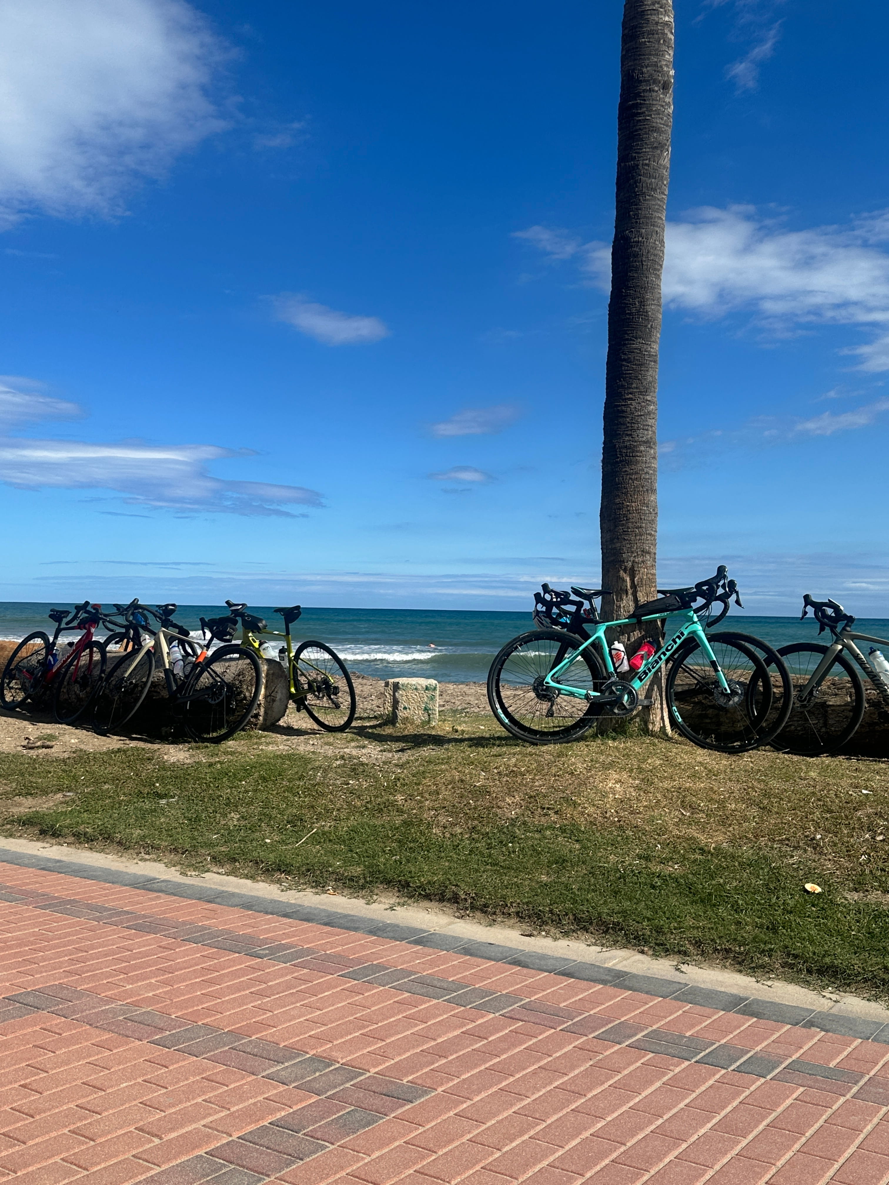 We ride out to Grao de Burriana, a relaxed beach town where lunch by the sea feels entirely earned. The return takes us along the Millars River and onto the beautiful promenade connecting Castellón and Benicàssim — with the mountains we climbed earlier in the week forming a dramatic backdrop behind us. A perfect way to close the loop.