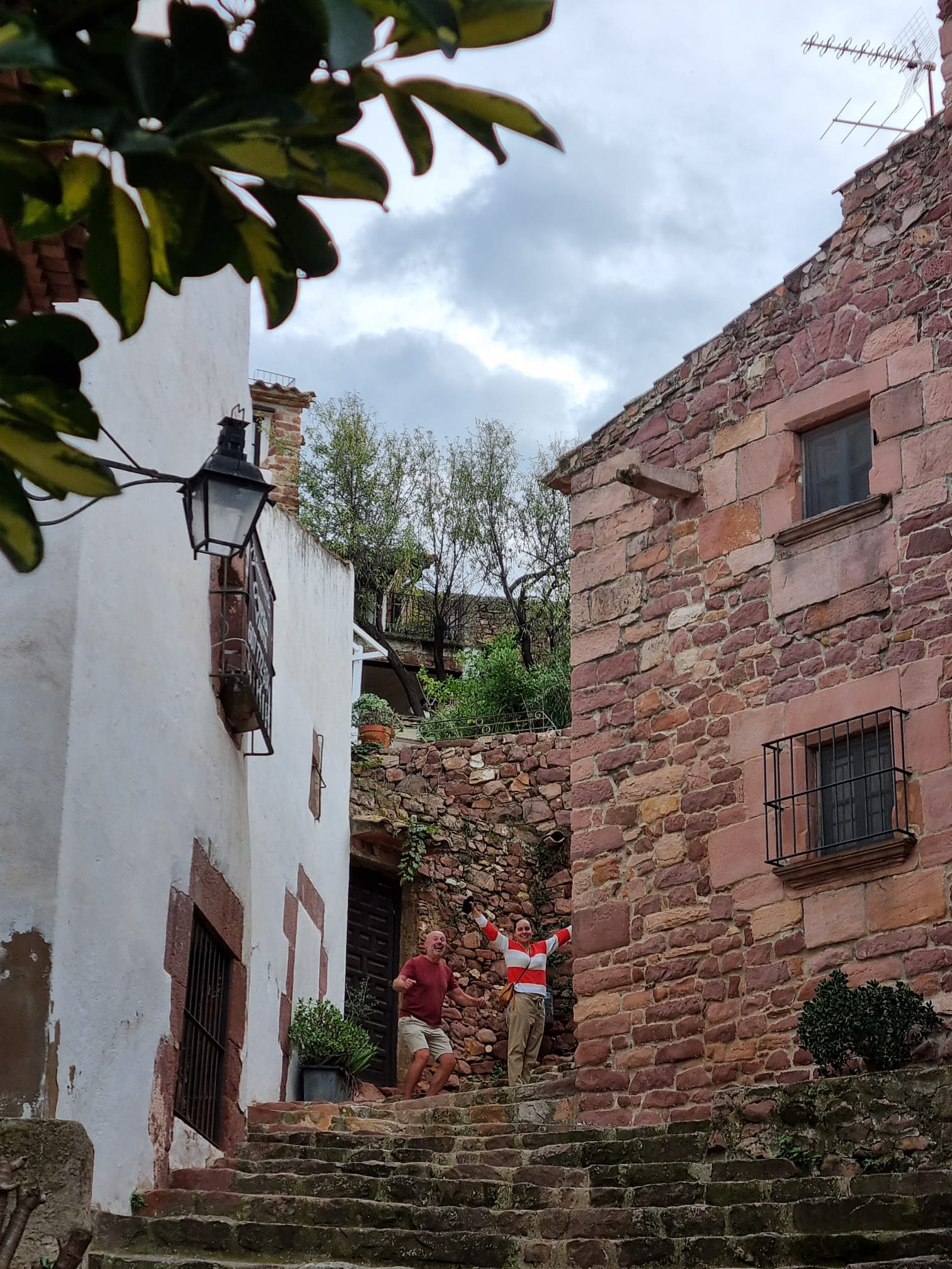 After breakfast — fresh-squeezed orange juice, local honey, yoghurt and David's homemade pan con tomate — we set off on a flatter start, skirting the edge of the Desierto de las Palmas before a steady climb into the interior. Our destination is Villafamés — officially one of the Most Beautiful Villages in Spain, and easy to see why. This medieval hilltop village, with its labyrinthine cobbled streets, whitewashed houses and the extraordinary Roca Grossa — a 2,000-tonne red rock that appears to have landed perfectly in the middle of the old town — is one of those places that stays with you. At the top, the ruins of an Arab-origin castle offer panoramic views stretching across the entire La Plana region to the Castellón coastline and the Mediterranean beyond.